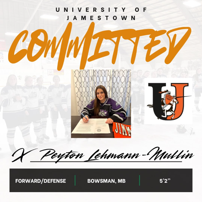 University of Jamestown is proud to announce the signing of Grand Plains Ice Dogs prospect Peyton Lehmann-Mullin, from Bowsman, Manitoba, Canada, for the 2026-2027 season.